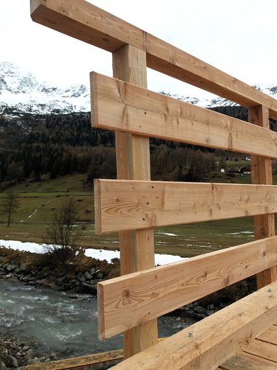 Lieferung und Montage der gesamten Holzbrücke samt Geländer